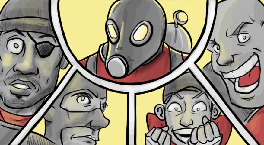 The idea for the story came from a friend (a real TEAM FORTRESS 2 fan) and once he gave me his story treatment, I was able to push through this whole thing from storyboard to this final result in less than a week.